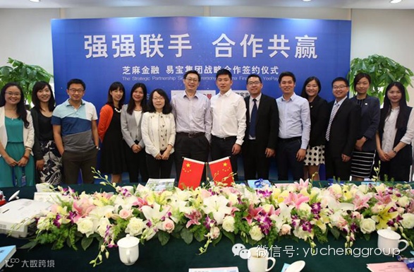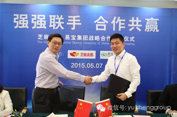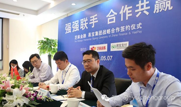 2015年5月7日芝麻金融与易宝集团战略合作签约仪式在芝麻金融总部,国贸CBD中环世贸C座11层成功举办。钰诚集团副总裁、芝麻金融董事长路涛,首席执行官靳伟,首席运营官张平与易宝集团CTO、天创信用服务董事陈斌,天创信用服务总经理李文贤,懒猫金服总经理罗菁等双方管理层代表出席了本次战略合作签约仪式。