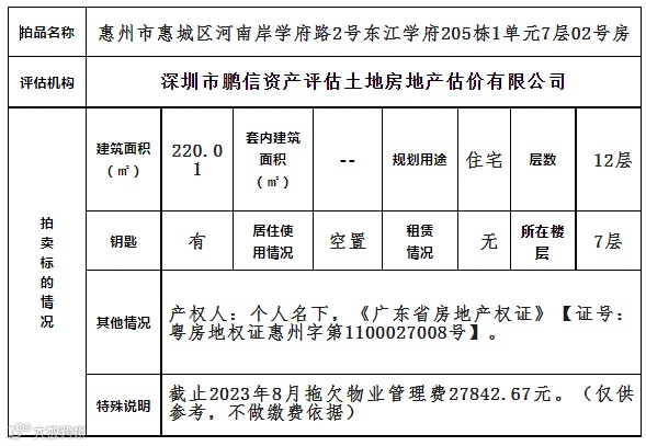 惠州市大众拍卖有限公司 0752-2383103 13928365553 张先生