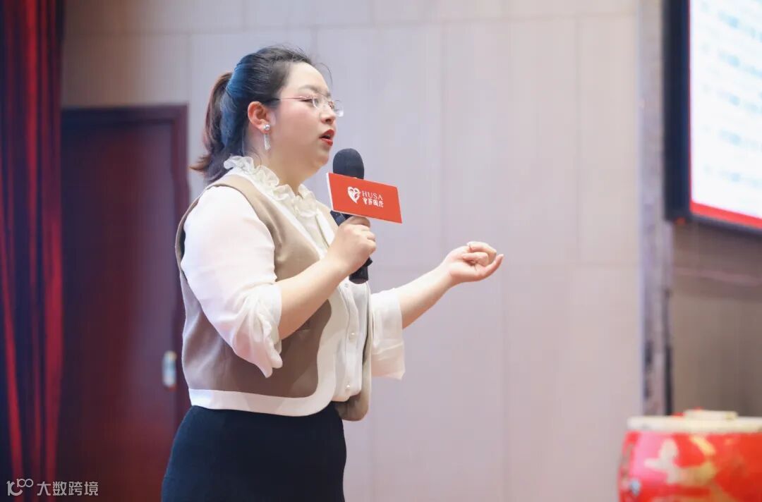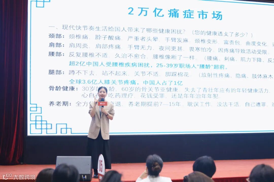 皇莎企业大学-向萌女士,在会上培训非遗骨康项目专业知识