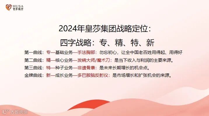 必须追求极致,用伟大的产品和服务提升用户美好。必须创造惊喜,超越用户期望,为用户创造感动,赢得用户热爱。并提出2024年皇莎集团四字战略定位:专、精、特、新。