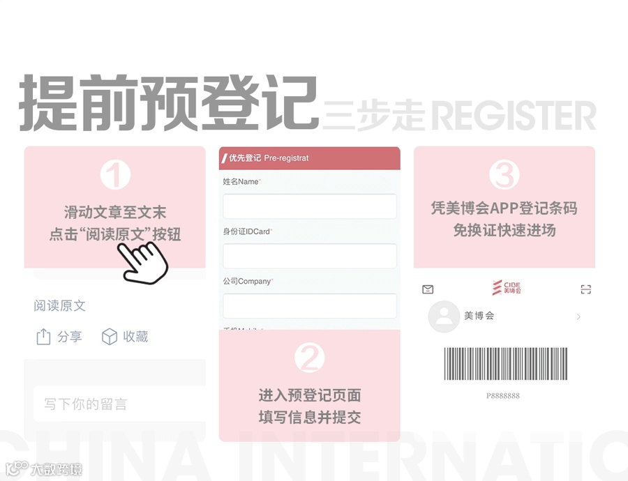 入口二:每篇推文滑动至文末点击“阅读原文”进入预登记界面。