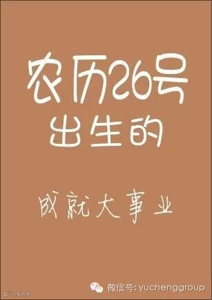 第26个出生日常被认為代表追求伟大成就并具野心的特质。26出生日所拥有的力量显示出你小心谨慎,具强烈的价值观和敏锐的判断力。第26日出生的人,通常你负责且具审美观。有时你会太快放弃,因此只要自制加上小心计划,你就能达到成功。耐压力特强,即使肩头责任重大,也能够处理得稳稳当当,是个实行主义者。