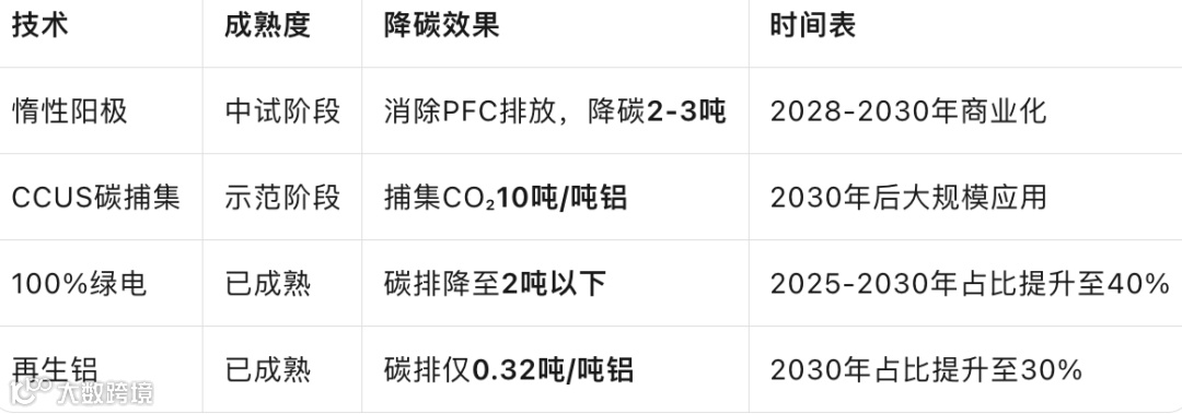 长期:惰性阳极+100%绿电,实现"零碳铝"终极形态