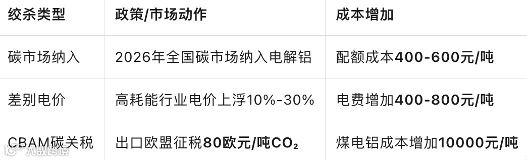 生死线:2026年起,煤电铝成本较绿电铝差距扩大至2000-3000元/吨,无转型企业将被淘汰。