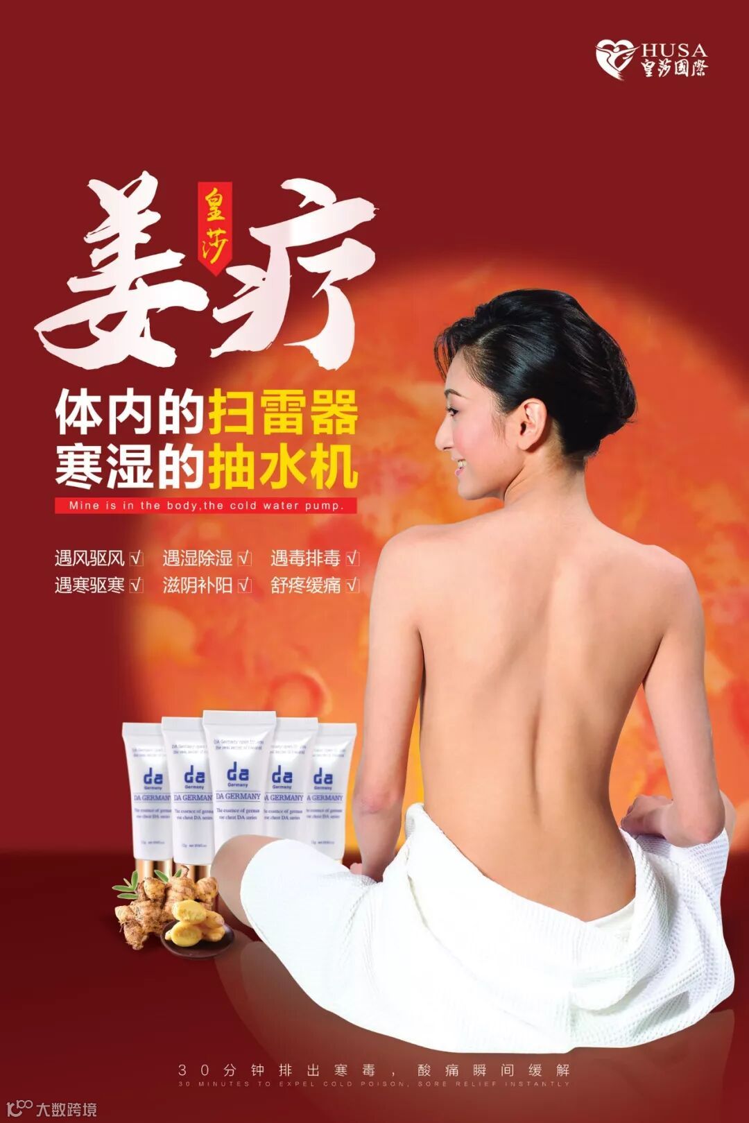毕竟它的原料就不简单了。它从最辣的非洲野姜中提炼,里面热,外面凉,不伤皮肤,效果是姜和一般姜油的400倍,遇风排风,遇湿除湿,遇毒排毒,遇结散结。再结合外敷,可以让姜精华膜的热力持续4—6个小时,做一次热力原姜膜,就相当于随身携带了一台寒湿抽水机,可以持续4--6个小时不断地往外抽寒湿,特别适合给身体排寒除湿。四舍五入岂不是省了一台除湿机的钱吗?
