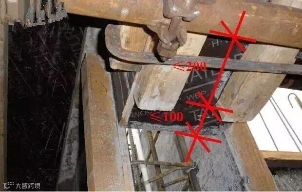 6.1 在外剪力墙支模时,所有加固方木应与模板上口平齐,再在上口处结合预埋螺栓设置通长方木,用来固定上口模板,防止变形,保证墙体混凝土外边平直度。