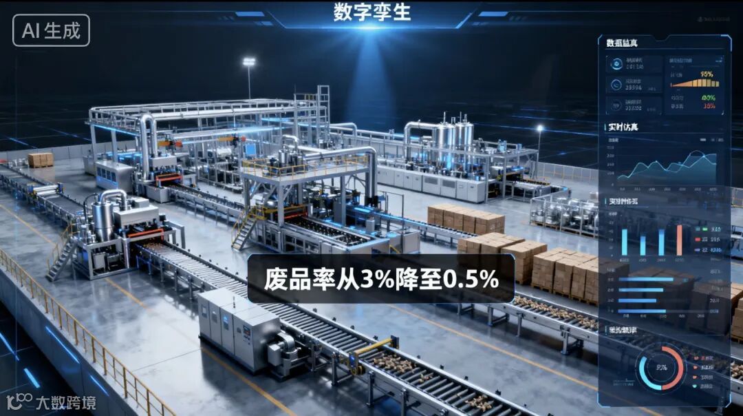 - 数字孪生工厂:实时模拟生产,废品率从3%降至0.5%。