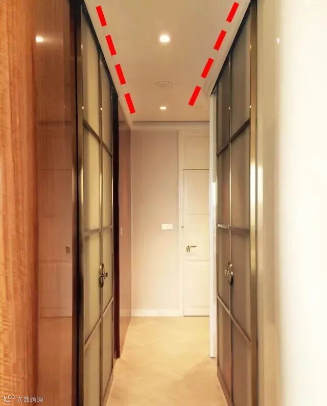 之后,在外侧封完基层板,同时,安装暗藏移门的轨道,如下图: