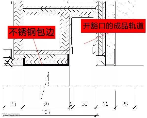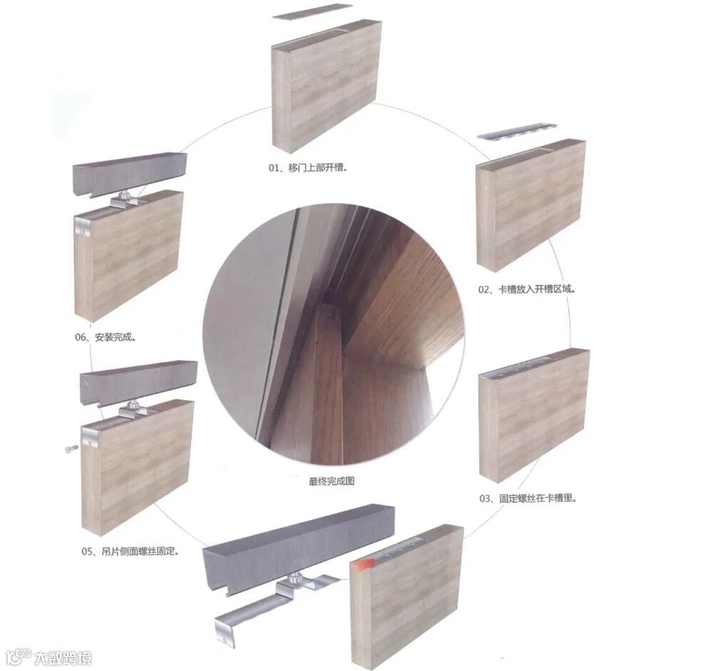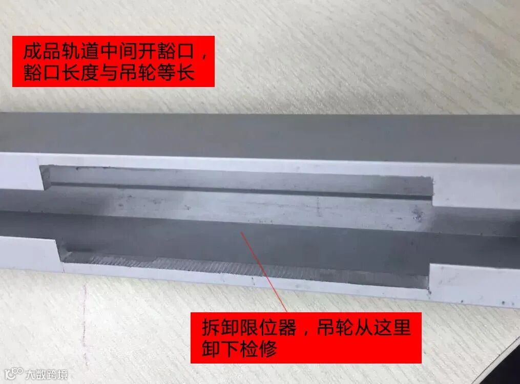 门中线与轨道的豁口中线在一条线上;严格控制轨道固定螺丝的尺寸与位置,使轨道安装完成后牢固、美观。