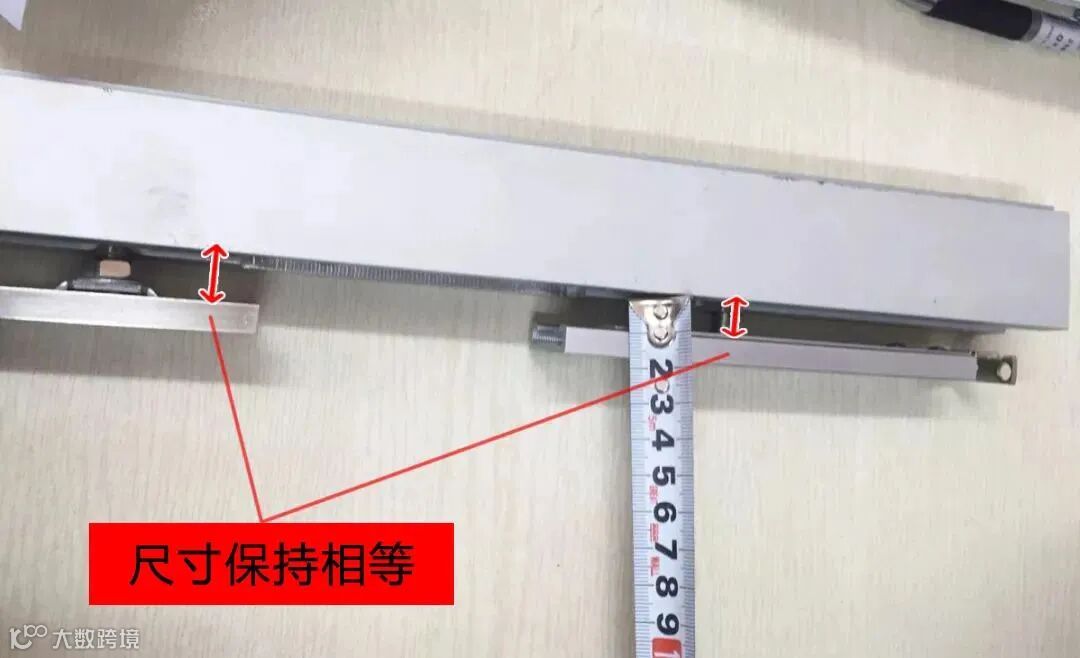 保证单扇移门上的两个吊轮与移门连接件的距离相等,避免门扇关闭状态上下不垂直的质量问题。