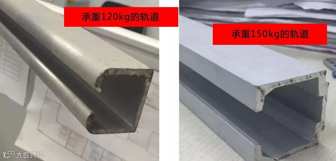 移门轨道供应商提供有2种,分别能承受120KG和150KG的重量,项目部最终选择承重150KG的轨道。