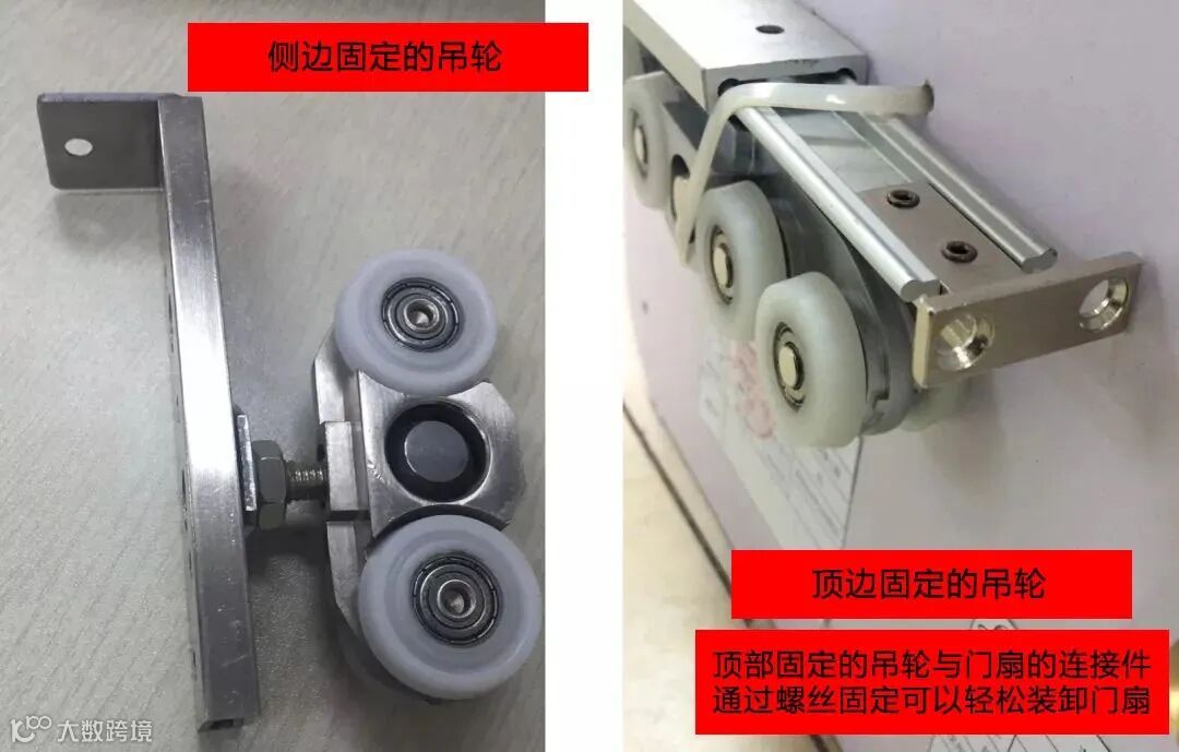 同时移门吊轮也有侧边固定和顶部固定2种方案,项目部最终确定为顶部固定方案,即右一:
