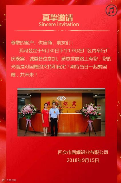 宴会地点:四会市大沙镇南江工业园工业大道10号(国耀铝业三厂厂内)