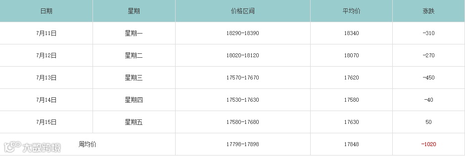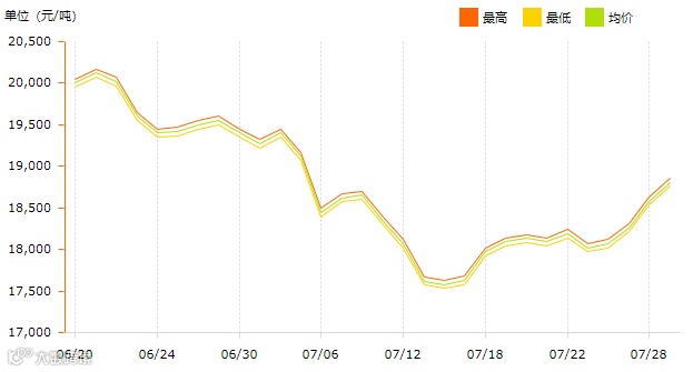 (2022年7月各周南海灵通铝锭价行情,截至7月29日)