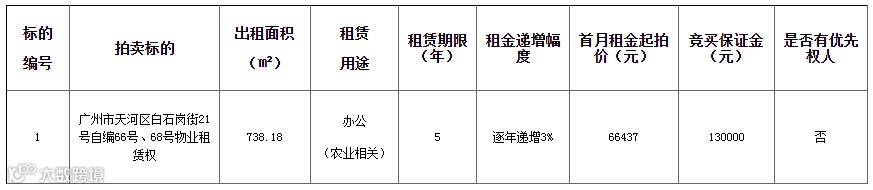 五、上述标的《租赁权拍卖标的情况及特别说明》、《广州市房屋租赁合同(样本)》及《拍卖规则和注意事项》等拍卖资料请各竞买人登录交易平台详细查看本公告附件内容。