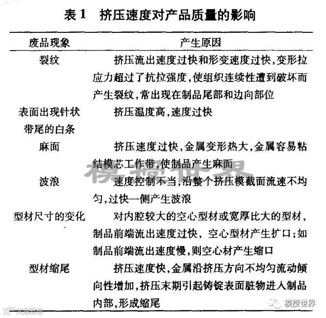 关键词:挤压速度;影响因素;产品缺陷;解决措施