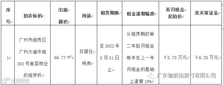 广州市越秀区广州大道中路203号首层物业的租赁权拍卖公告