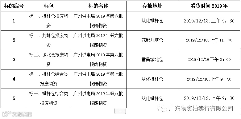 广州供电局2019年(第六、七、八批)报废物资看货时间表