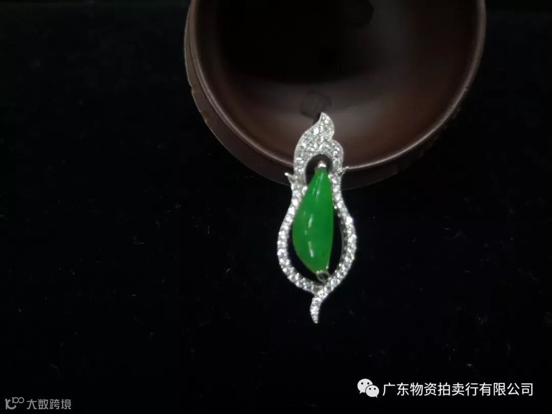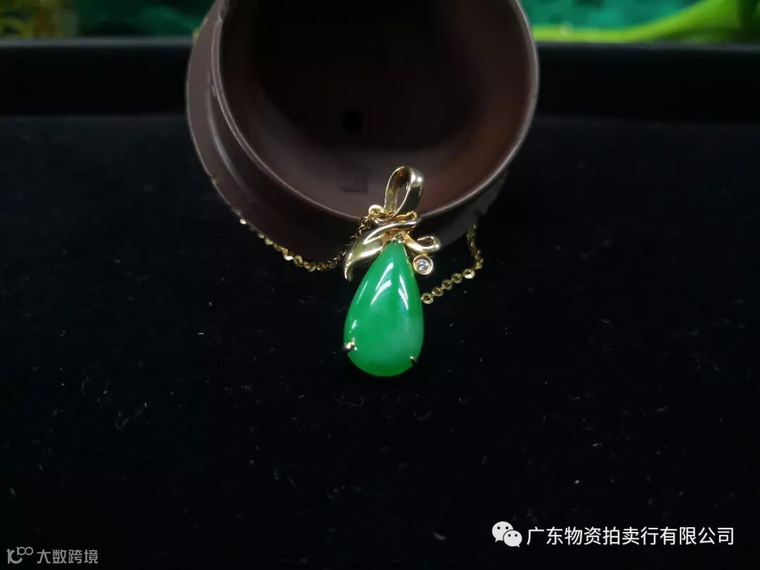 5、翡翠K金钻石镶水滴型吊坠一只,参考价5800元;