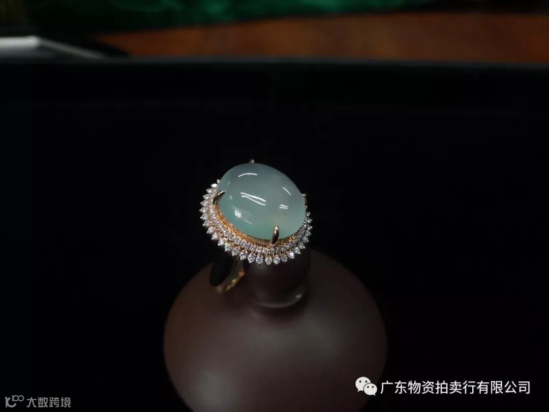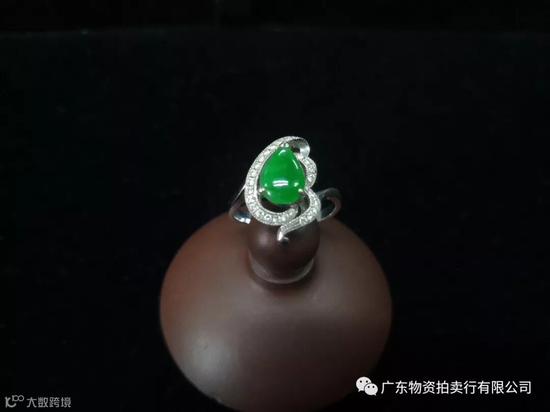 2、翡翠K金钻石镶蛋面女款戒指一只,参考价20000元;