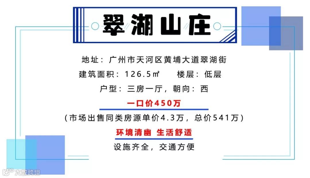 翠湖山庄翠湖山庄位于天河区黄埔大道萝斗岗1号,曾获“广州十大明星楼盘”称号。占地面积:54746 平方米,建筑面积:310000 平方米。 建有13栋14-32层高的住宅(地下停车场35000平方米,近800个车位)区内建有大型豪华会所,配有多项康体娱乐设施:室外阳光游泳池、高尔夫球练习场、儿童游乐场、餐饮中心等。并附设大型私家园林“万象翠园”面积过4万平方米,汇集各式异国风情文化韵味。 临近华南大道、黄埔大道等城市主干道,有多路公交车途经。耗资逾亿元兴建“翠湖会”消闲娱乐设施一应俱全,功能布局冠绝全城。