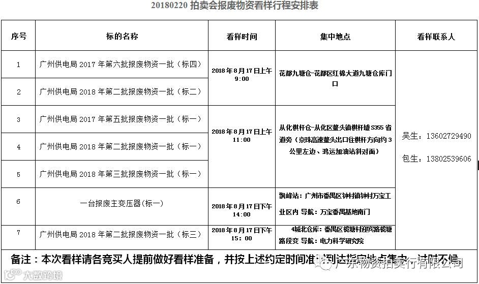 四、展示时间:2018年8月16、17日 展示地点:标的存放地