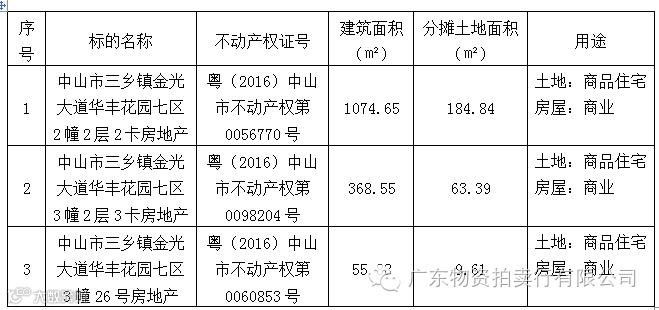 受委托,我司定于2016年8月16日上午11时整在中山市中山四路68号顺景花园酒店十一楼会议室,按现状捆绑整体公开拍卖以下标的:
