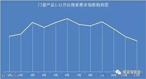 从趋势图中可以得知,门窗产品搜索需求量随季节波动性变化比较大,其中3月、6月、9月是一年中的三个峰值,市场需求量大,企业主们可以提前准备好库存,做好营销推广工作。1-2月,11-12月是门窗产品需求淡季,在维持一定市场铺货率的基础上,注重市场基础的建设,以巩固和强化品牌记忆,维持与客户的关系,培训销售人员,为旺季打好基础。