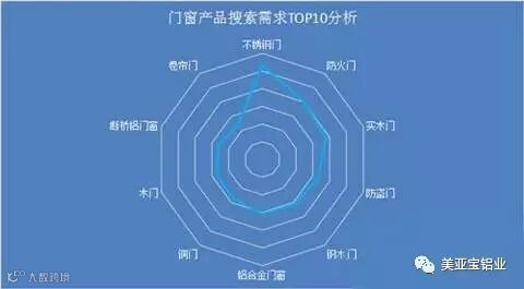 从大数据中可以看出,门窗产品市场需求量占比最大的是不锈钢门,其次是防火门、实木门、防盗门等。不锈钢门以永不生锈为卖点,色泽光亮,不锈钢门花贴面,新颖独特,能搭配不同居室风格,因此市场份额占比较大,而且随着房地产市场的发展,以及消费者文化意识的不断增强,更多种类的不锈钢门将会出现,以满足消费者不同层次方面的需求。