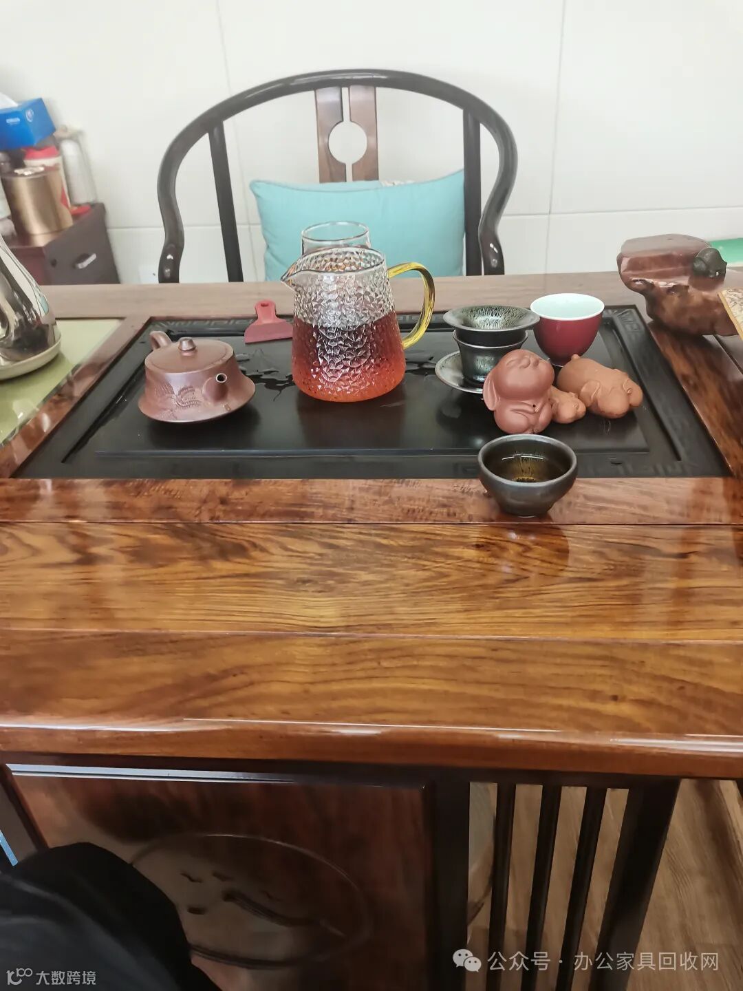 茶桌椅 实木大板台博古架展示架实木餐桌椅等。