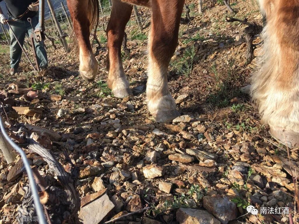 Rectorie的斜坡地带,加上片层石头的地面,还有狭窄的道路,机器根本不能在此被采用,所有的葡萄树的维护、修剪、除草,还有采收,都是人手完成,耕耘由马来完成。除了成本高之外,所消耗的时间,也是不可忽视的。