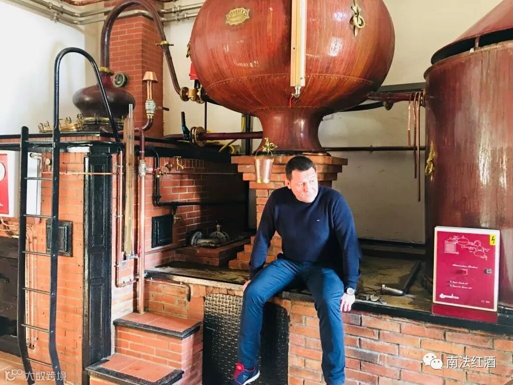 干邑的生产过程是通过压榨、发酵、蒸馏之后,得出一种透明的溶液。溶液经过在橡木桶里陈放,陈年期间橡木桶都存放于黑暗的酒窖里,随着时间慢慢地演变,原本无色的透明溶液慢慢染上橡木的颜色,香气也越来越馥郁醇厚,同时橡木的烘烤香气也会随之逐渐转移到干邑里面。这是我的哥们Mathieu在给我们作讲解: