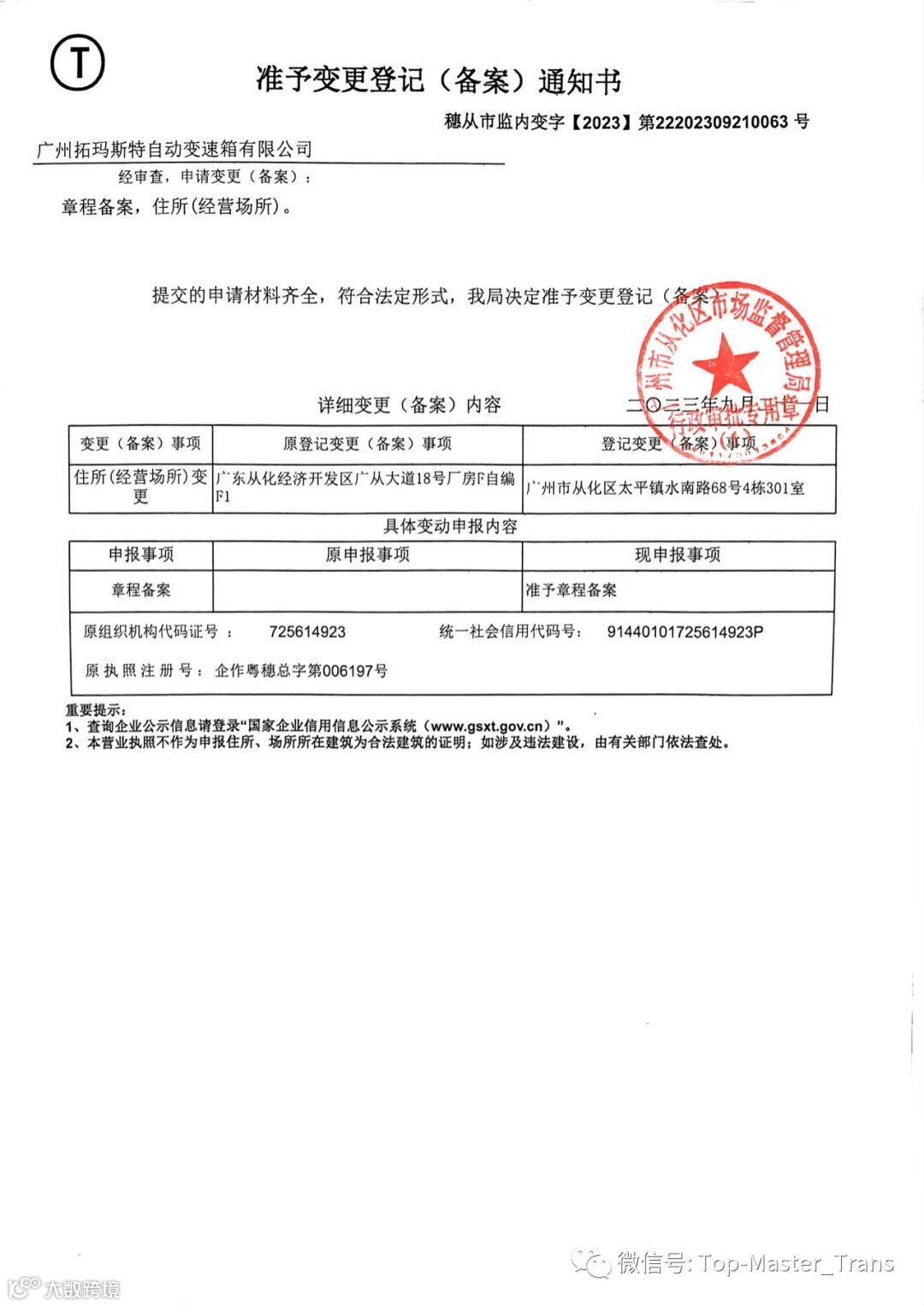 因应业务发展的需要,我司广州总部已于2023年7月起搬迁至从化太平镇廣全高新产业园新址(广州市从化区太平镇水南路68号4栋301室)继续生产和服务。相关工商营业执照地址已更新完毕。搬迁至新址后,公司广州总部生产营业面积从之前的1200余平米增加到2000余平米,并更新了部分生产、检测设备。