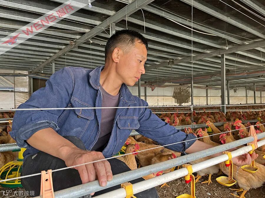 部了解情况。当他了解到温氏“公司+农户”模式,温氏为农户提供鸡苗、饲料、技术、服务、销售一条龙服务,农户只需按要求把鸡养好就行。“这种合作模式太适合我了,不但创业门槛低,又没有学历和年龄的限制,同时还解决了缺技术、缺资金、缺市场的三大难题,真是太省事了。”杨喜军当场便下定决心与温氏合作养鸡。2019年9月,他正式成为温氏合作农户,也是他人生的第一次创业,燃起了对未来生活的希望。