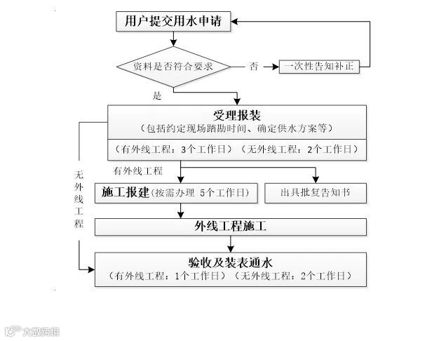 受理后1个工作日内联系用户预约查勘现场,2个工作日内确定用水方案出具批复告知书 |