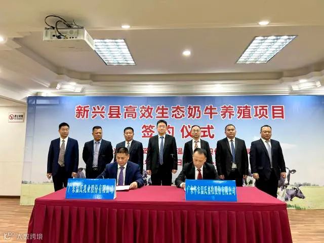 陈冠鸿代表新兴县人民政府与温氏乳业双方签署《新兴县高效生态奶牛养殖项目投资协议》;温氏乳业与华农温氏签署《高效农业产业合作项目共建协议》