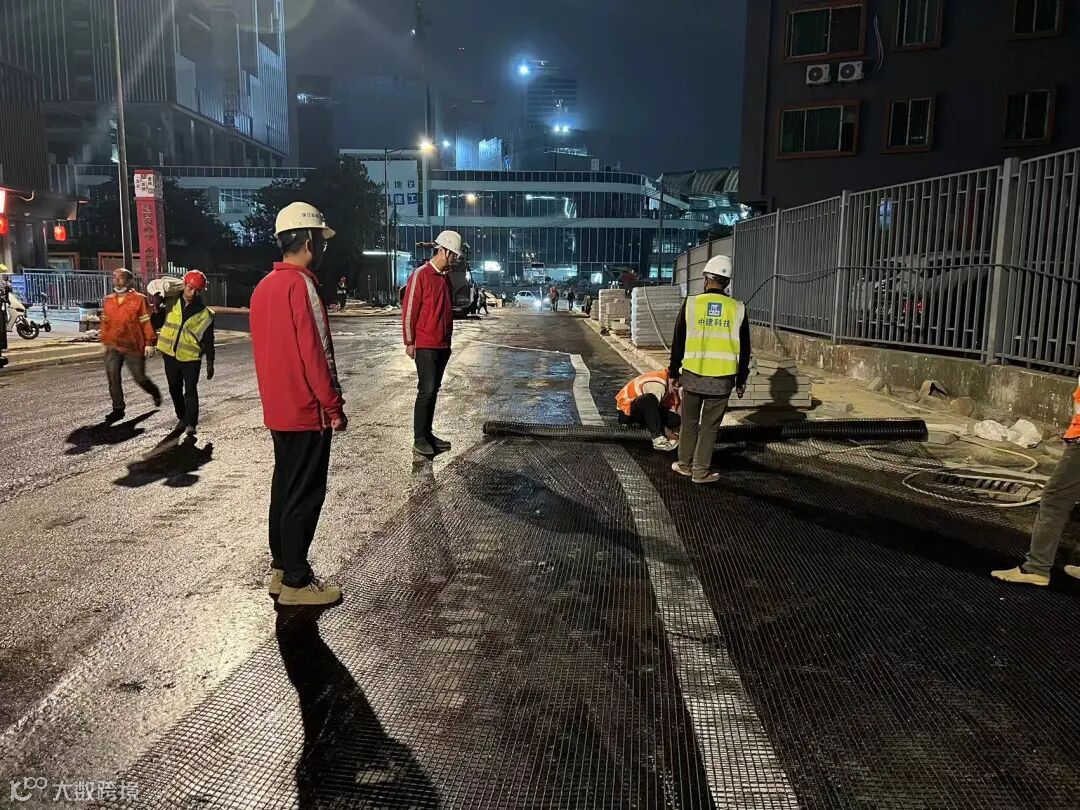 施工期间,项目部坚持念好“抢”字诀,在做好工期倒排计划的同时,也注意留意白云站的施工进度,时刻收集了解周边工程车辆的进出计划。果断采用“交差作业+互补施工”方式,将路网改造融入站场建设排期,逐段分幅进行道路翻新施工,最大程度减少因各自施工带来的干扰。受限于道路因素,不少地段无法使用大型机械设备,为减少因人工施工带来的二次返工,珠江监理持续加大巡视力度,长期派驻8名监理人员在现场进行饱和式巡查,做到早发现、早预警、早处置,确保施工符合设计图纸要求。尤其在非常规作业施工中,珠江监理严格督促施工单位,注意做好夜间路砖铺设、地下管网探测和路基修复等噪音控制工作。在减少因市政道路施工给居民出行和居住造成影响的同时,确保了广州白云站和周边线网升级改造的施工需要。
