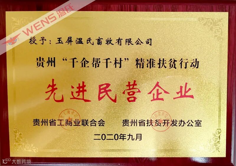 近期,2020年贵州省“千企帮千村”精准扶贫行动先进民营企业表彰会在贵阳召开。贵州养猪玉屏公司荣获由省工商联、省扶贫办颁发的贵州“千企帮千村”精准扶贫行动先进民营企业称号。自贵州省“千企帮千村”精准扶贫行动实施以来,玉屏公司聚焦精准扶贫,把温氏“公司+农户(家庭农场)”经营模式与贵州农村实际相结合,大力发展生猪代养模式,对建档立卡的贫困户进行重点帮扶,促进合作农户增收致富。(贵州养猪公司/贵州养猪办公室 毕镜)