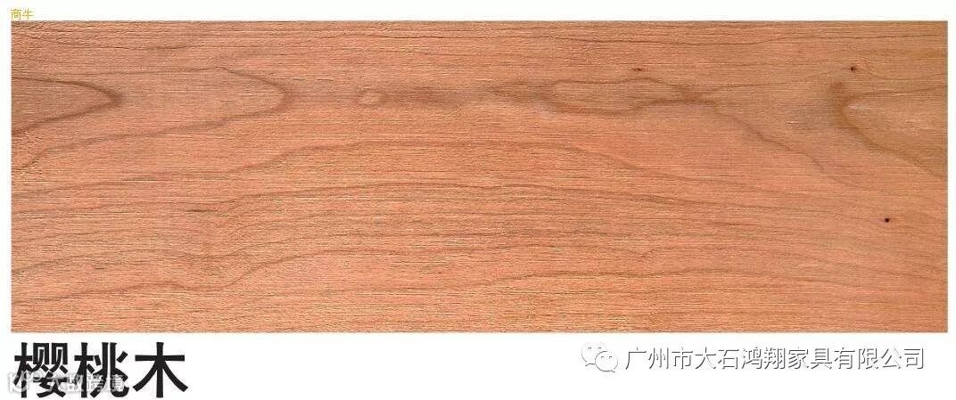 樱桃木是指黑色樱桃的木材,是一种坚固、纹理细密、有光泽的褐色或红色木材,能够获得强烈的光泽。樱桃木可用来精雕,也适合制作橱柜。樱桃木有笔直、规则的纹理,而且有深红色的生长纹路。主要用作胶合板的非洲樱桃或猴子果也有类似的生长纹路。它可做拼花地板、烟斗、乐器、实木家具和橱柜、高级细木工件、船用内装饰;特别适宜用来制作车件或雕刻件。精选的原木可用来制造家具饰面单板、橱柜饰面单板、护墙板和光面门等。