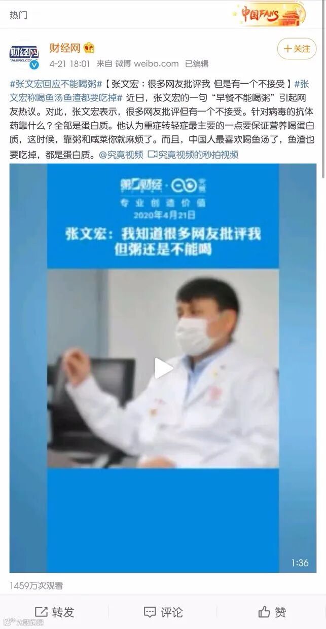 张文宏教授给出了王炸