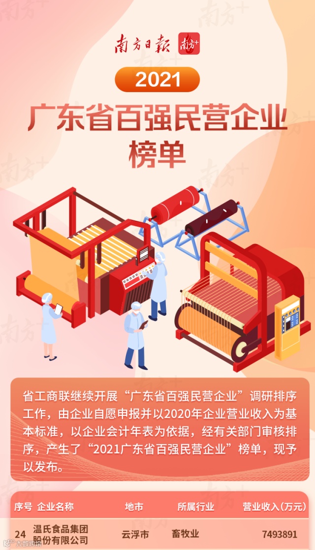 第24位,温氏股份入选“2021广东省百强民营企业”