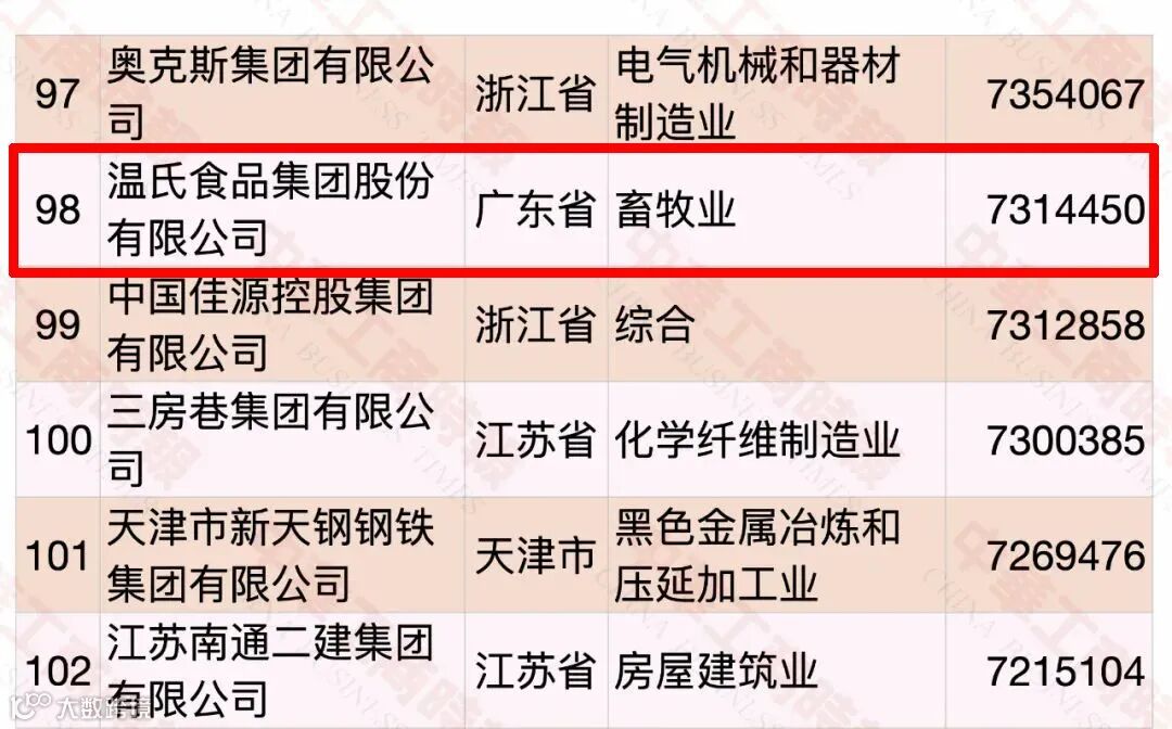 9月10日,由全国工商联主办的2020中国民营企业500强峰会上,《2020中国民营企业500强调研分析报告》及“2020中国民营企业500强”榜单正式发布。温氏股份上榜500强榜单前100名,位列第98位,较2019年上升23位,这是温氏股份自2015年来,连续6年进入中国民营企业500强榜单。