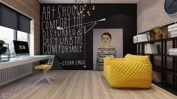 墙面的涂鸦英语和大幅的装饰画