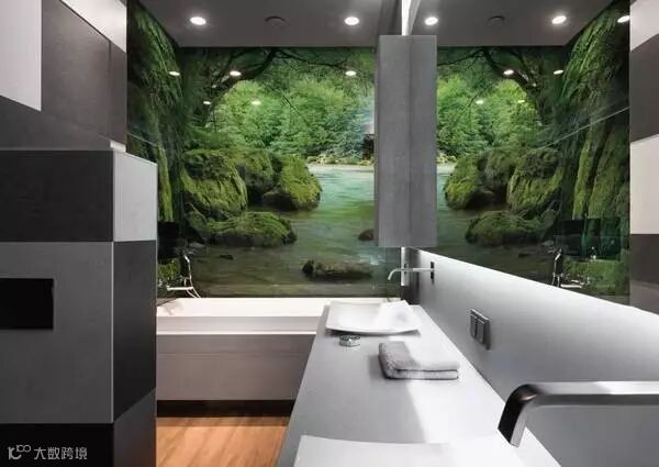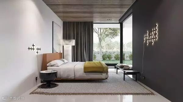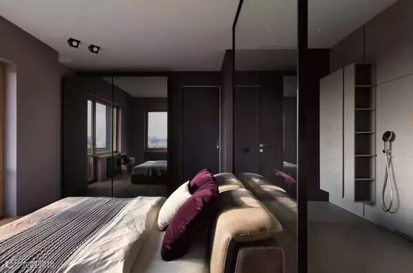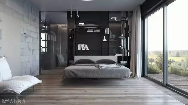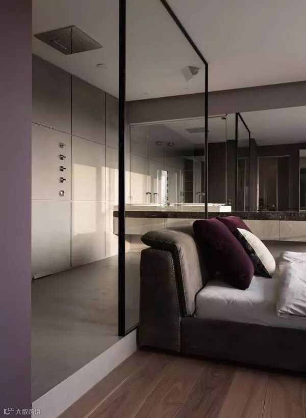宽大的床后背是一面玻璃隔断