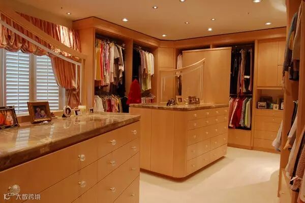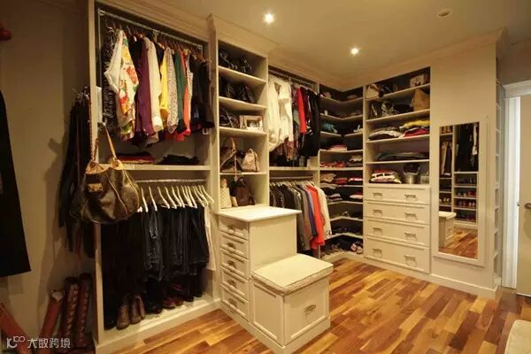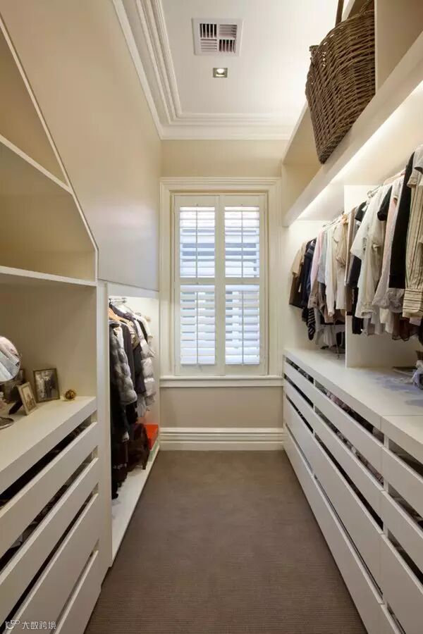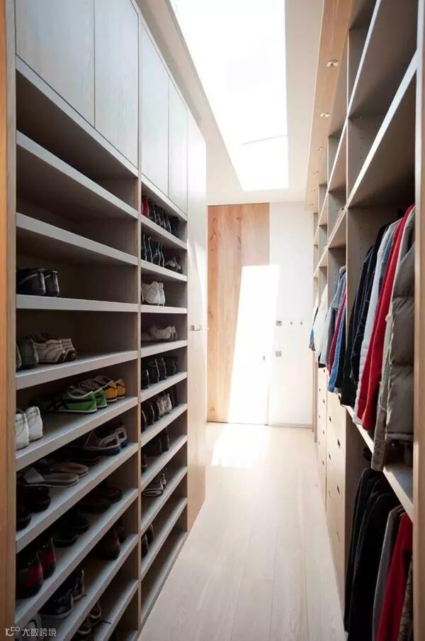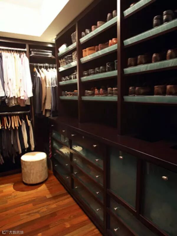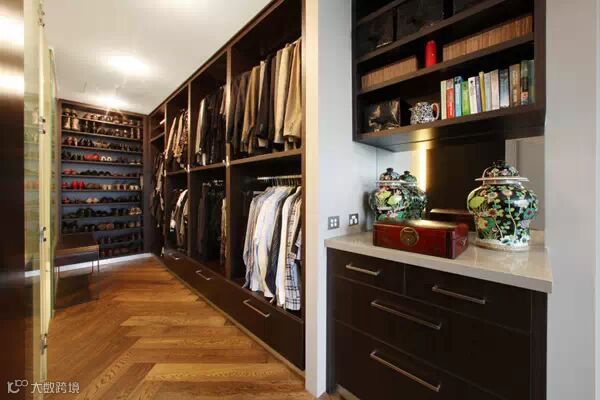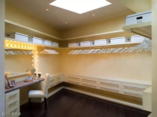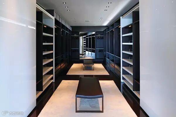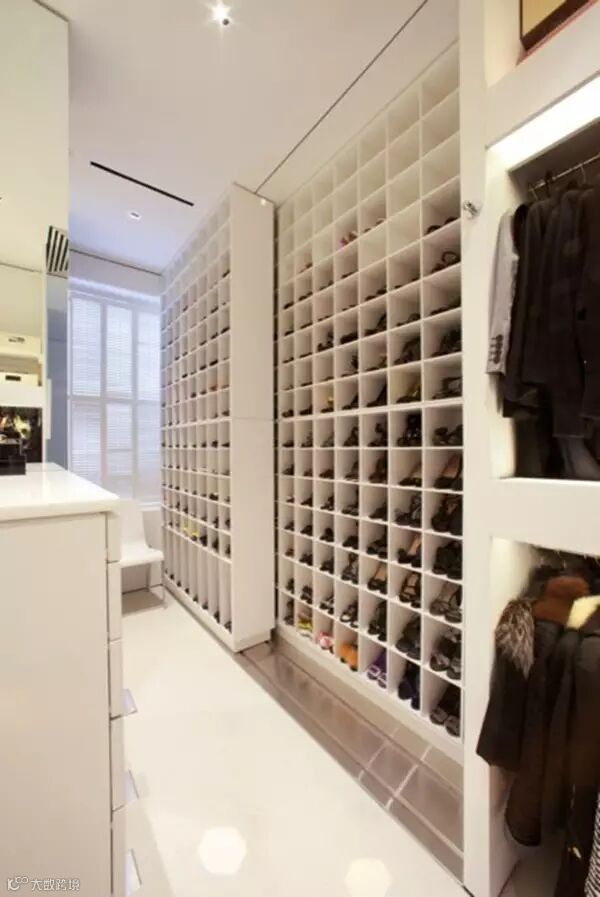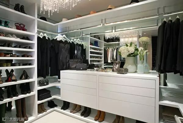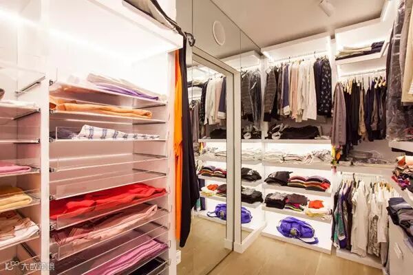 狭长型的衣帽间,两边倚墙而建的衣帽架搭配上耀眼的灯光,那感觉垦地就像是在逛商店一样。