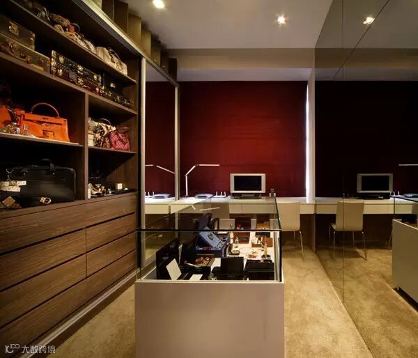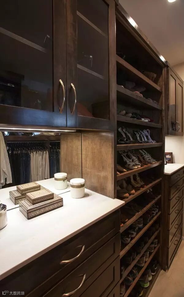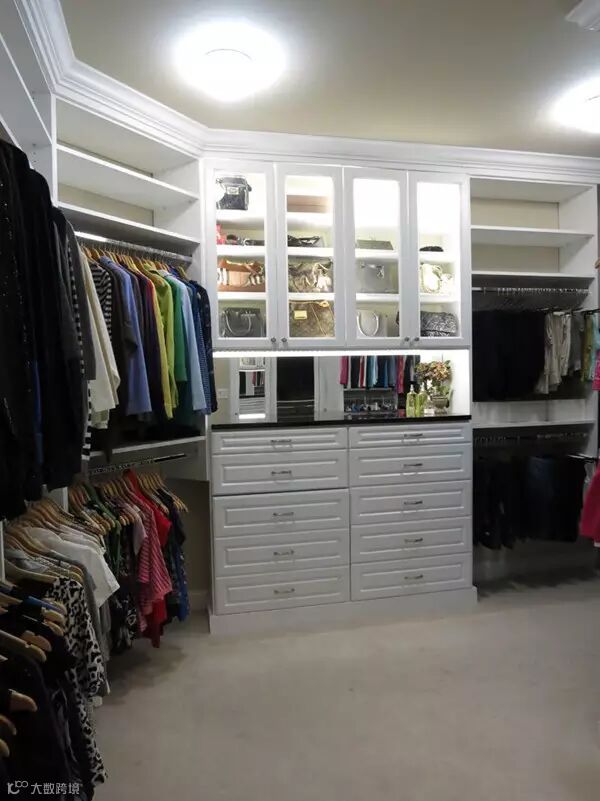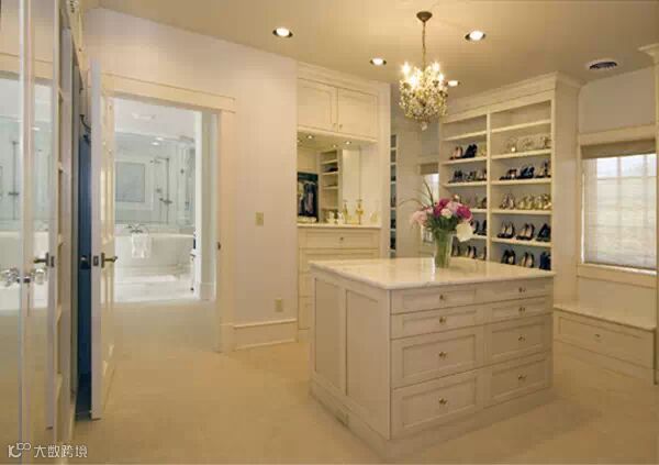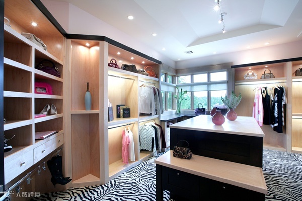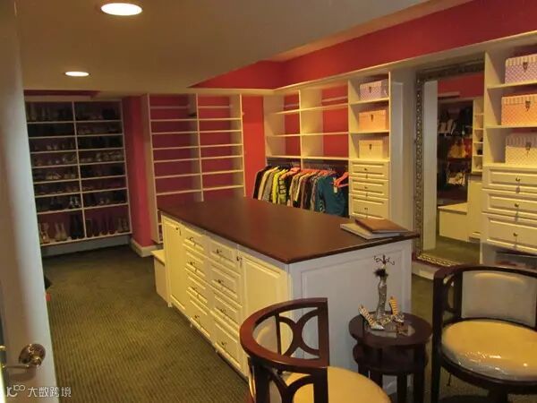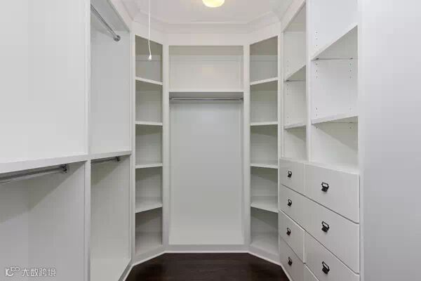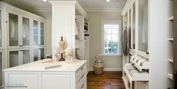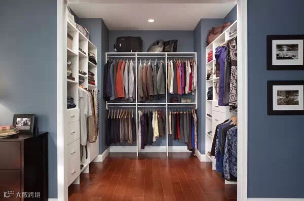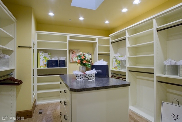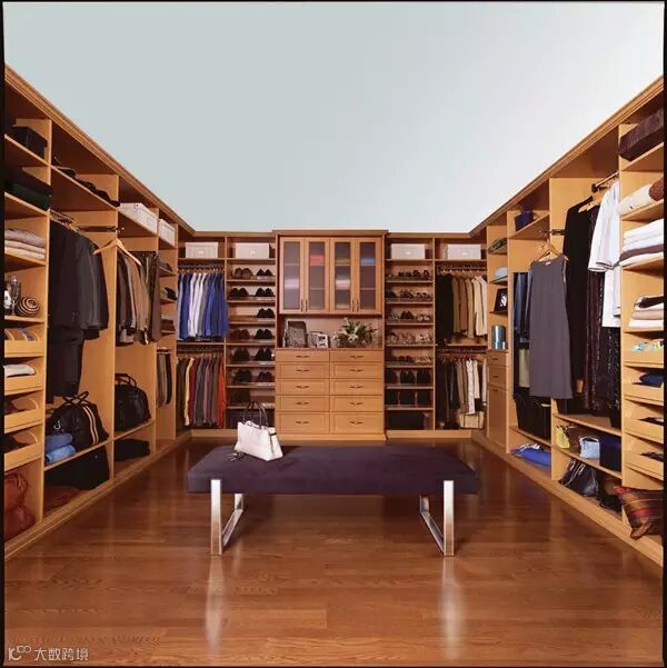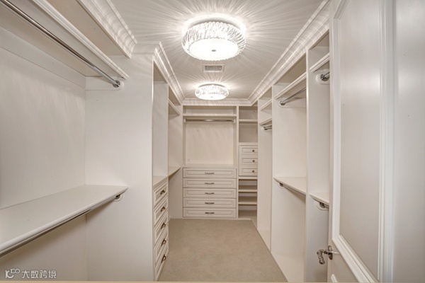 狭长型的衣帽间,两边倚墙而建的衣帽架搭配上耀眼的灯光,那感觉垦地就像是在逛商店一样。