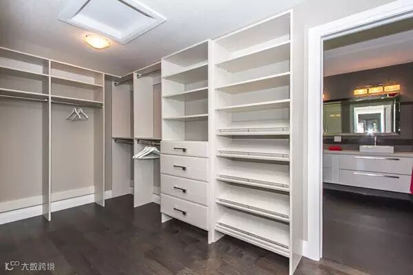 隔板式样较多的衣帽间设计,每层隔板都可以自由调节高度。