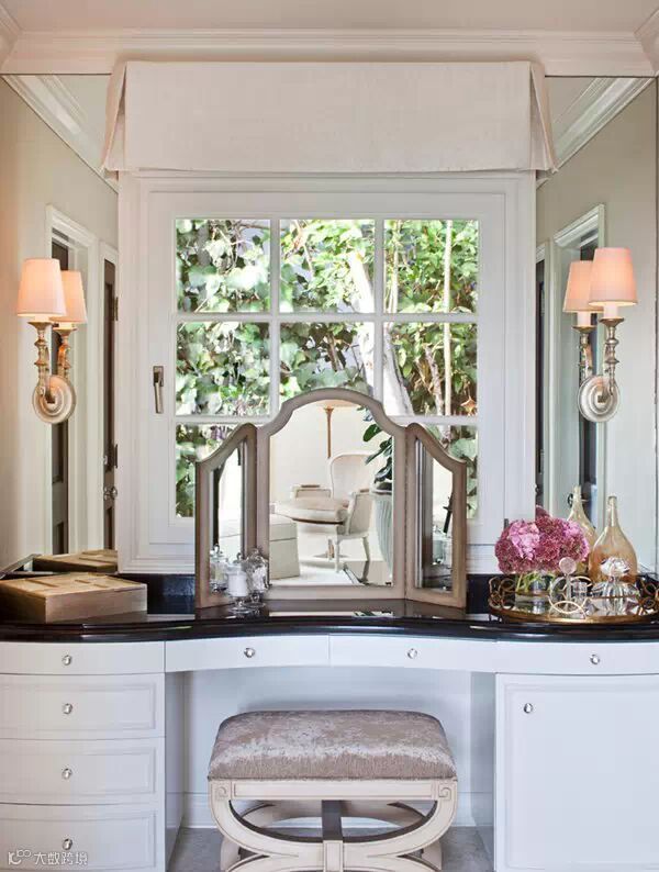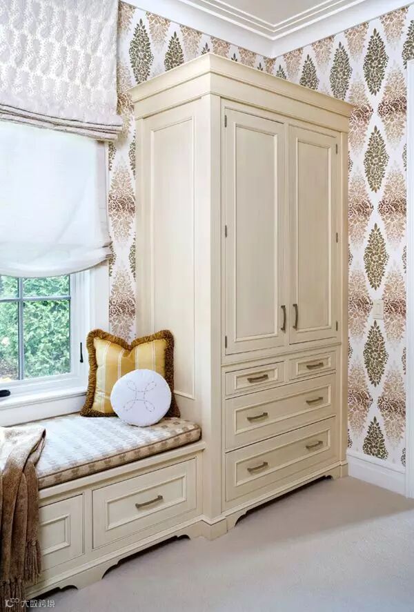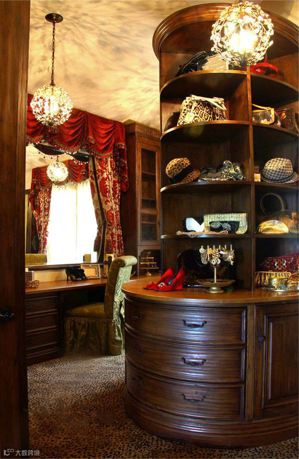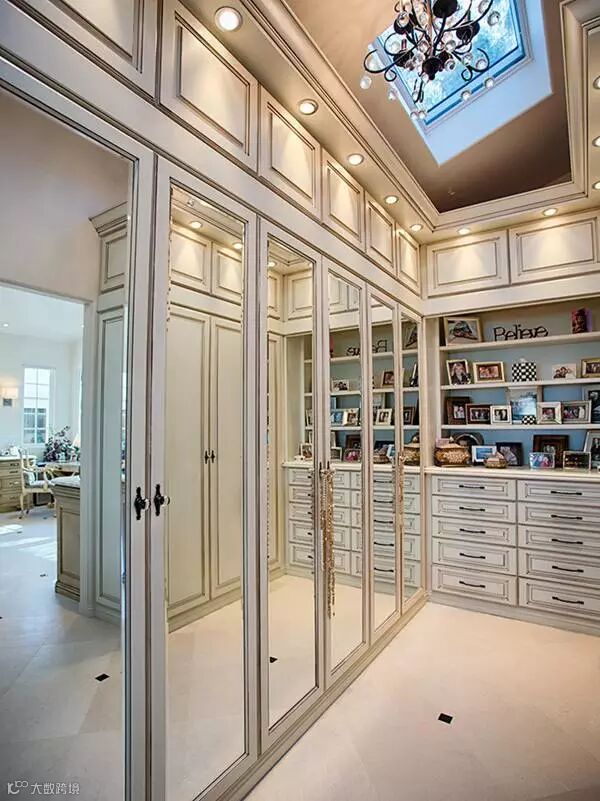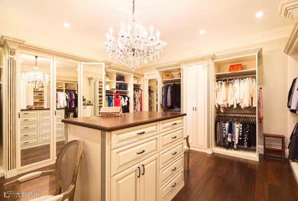 在衣帽间放一个欧式柜子,不仅可以放衣服,还可以作为化妆台,出门前换好衣服化个妆心情大好。