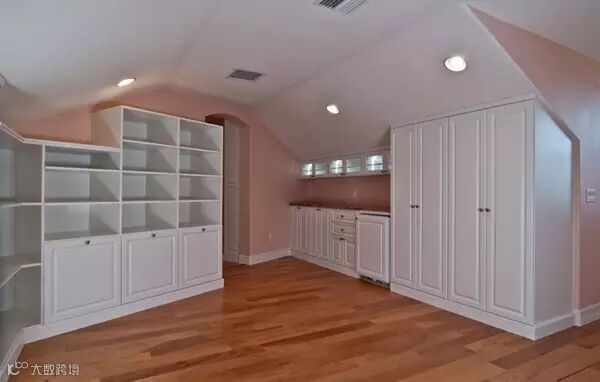 异形空间的嵌入式柜子,满足了多元化的衣帽间设计需求。