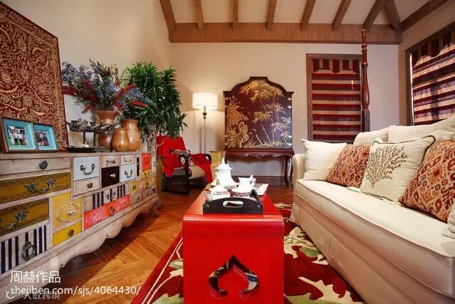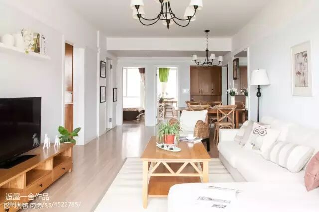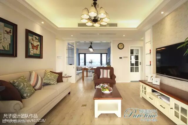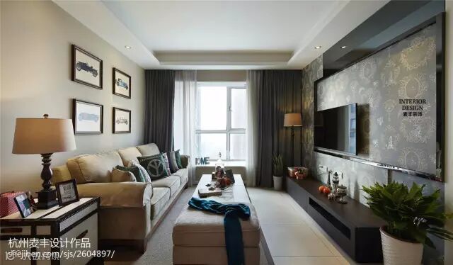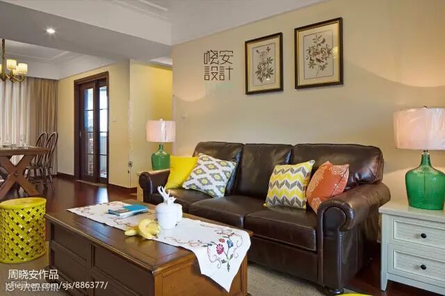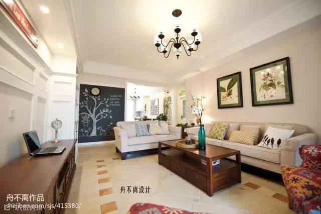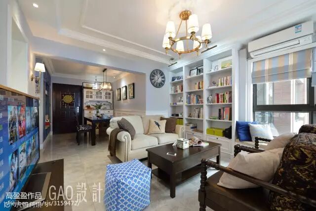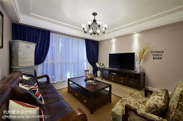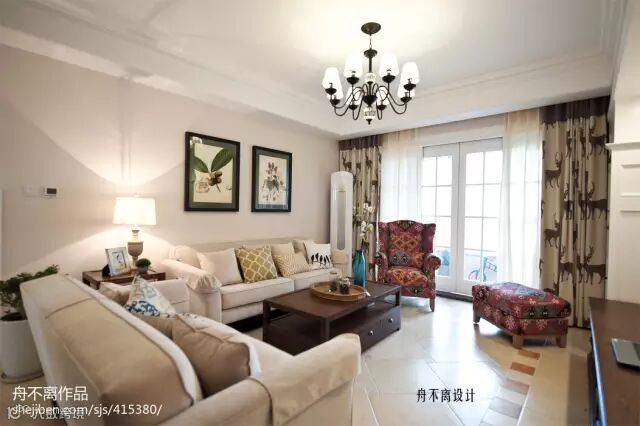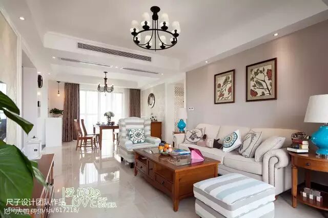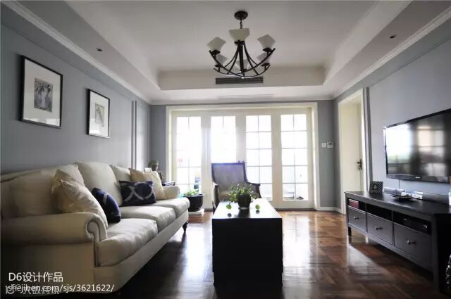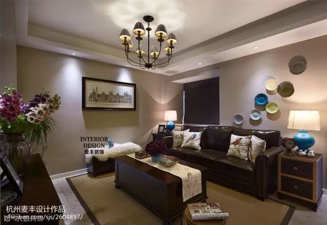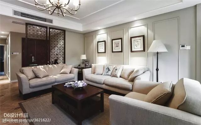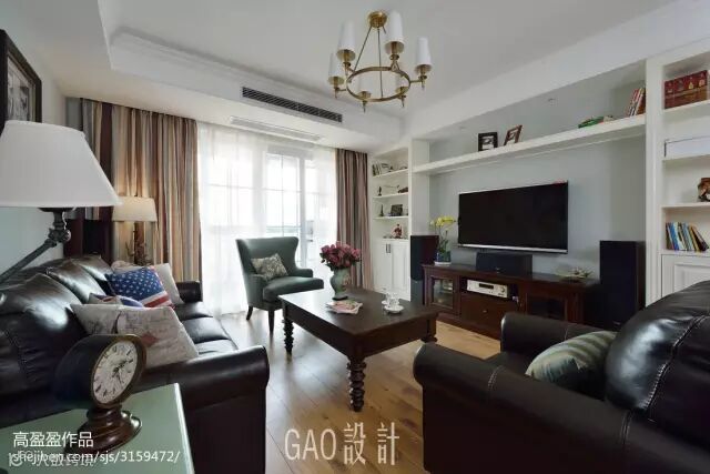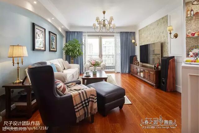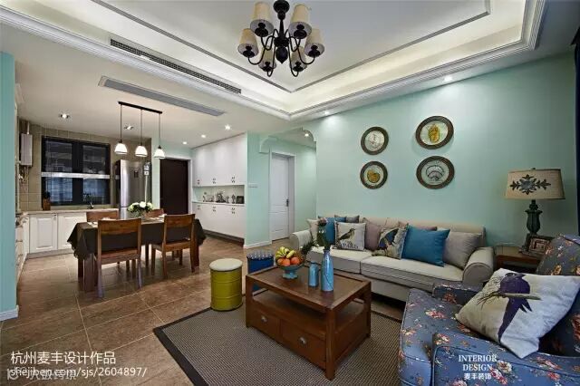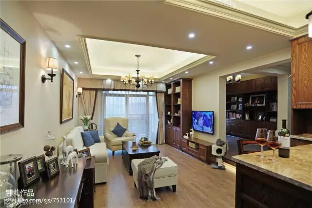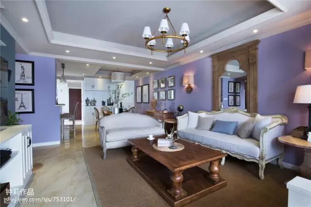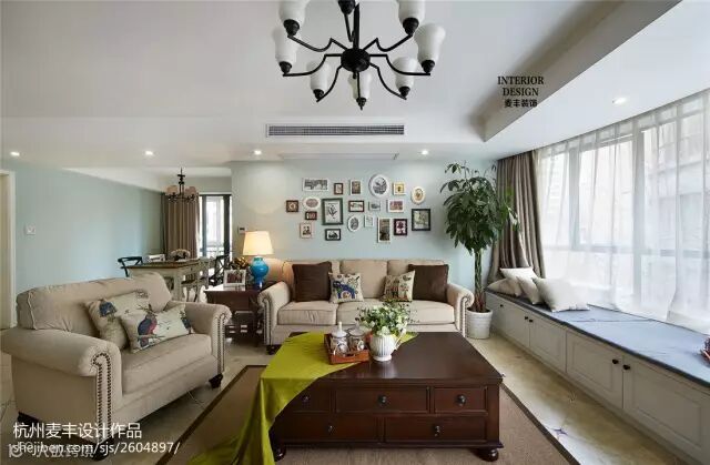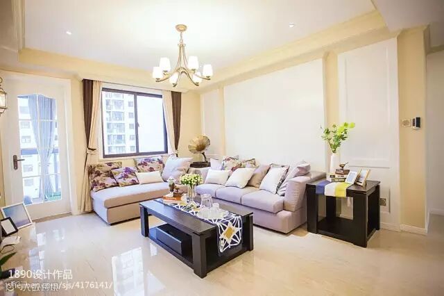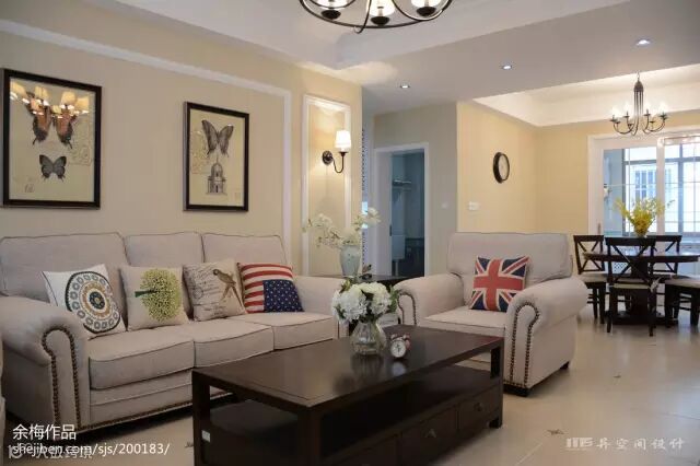 客厅的色彩以自然色调为主,绿色、土褐色最为常见,壁纸多为纯纸浆质地;家具颜色多仿旧漆,式样厚重;设计中多有地中海样式的拱。在古典中带有一点随意,摒弃了过多的繁琐与奢华,兼具古典主义的优美造型与新古典主义的功能配备,既简洁明快,又温暖舒适。